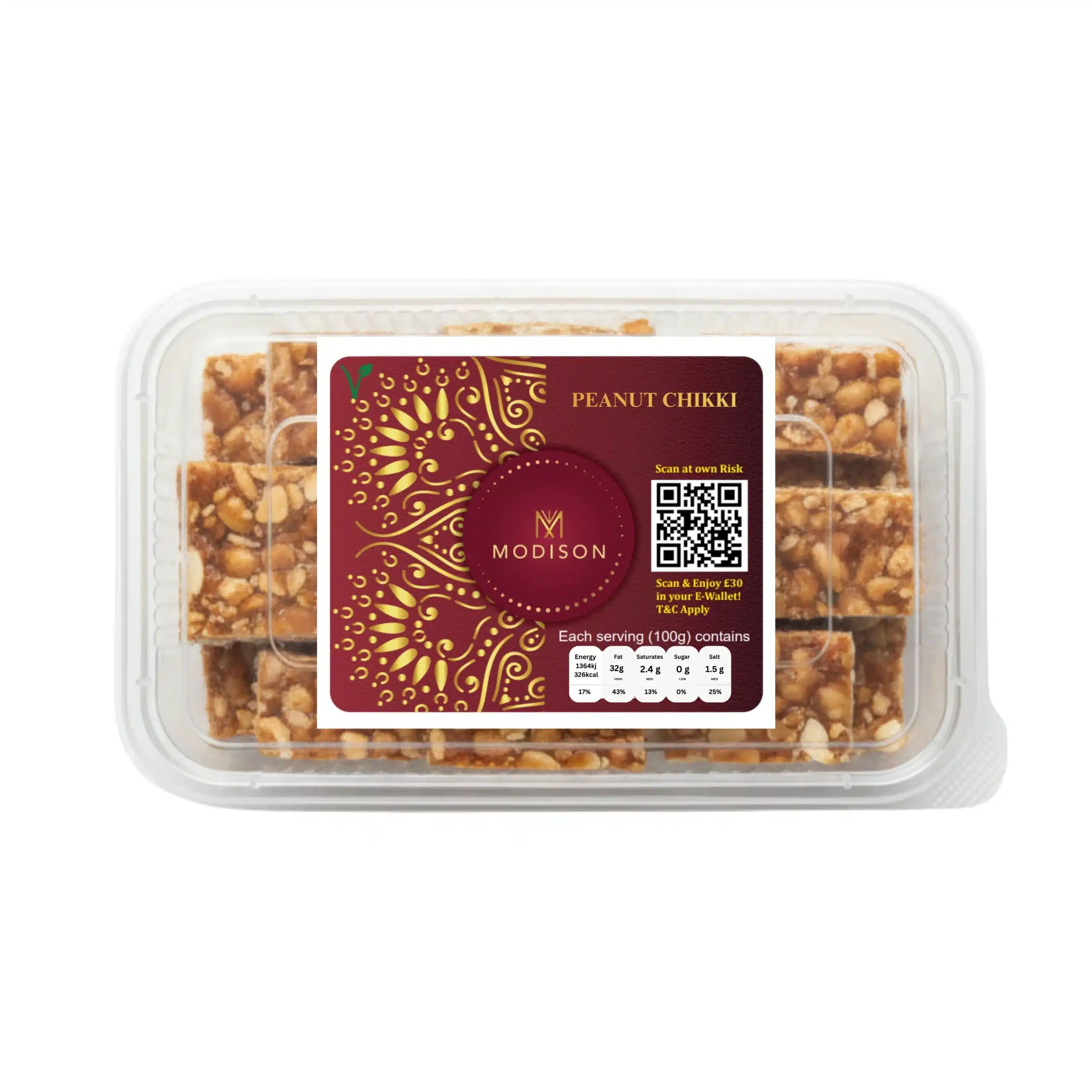 Enjoy the authentic taste of India with MODISON’s Peanut Chikki, carefully crafted using traditional recipes and hygienically packed for the UK market. Whether you’re celebrating a festival, gifting a loved one, or simply indulging your cravings, this product is perfect for any occasion. Produced in India and legally imported to the UK by PRS Imports Ltd.
